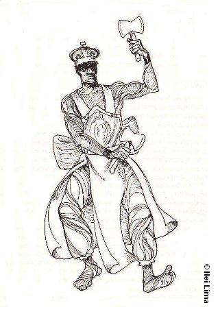 Na Umbanda, aqui no Brasil, Sàngó não usa os Ose (machado) e muito menos o Sèrè.